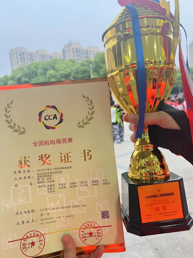 本网讯(通讯员 赵云飞 吴伊妮)4月26日至28日,由国家体育总局体操运动管理中心、中国蹦床与技巧协会联合主办的2024年中国长三角啦啦操挑战赛在浙江省湖州市体育馆举行,我院大学生艺术团舞蹈队夺得2024年中国长三角啦啦操挑战赛“公开青年乙组—爵士规定动作(2020版)—3级”项目冠军。