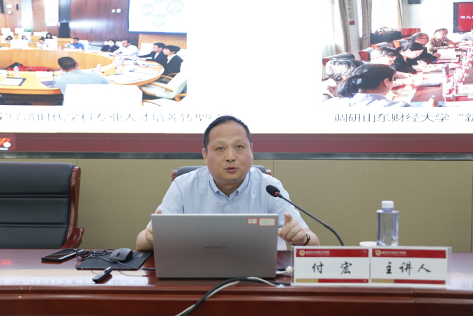 付宏在“‘新财经’改革背景下学校专业设置与人才培养路径升级研究”专题辅导报告中,首先介绍了他带队赴各高校开展“新财经”改革经验交流学习、走访企业开展“新财经”改革与高质量校企合作调研、“新财经”改革人才培养院长座谈会的调研情况。然后,从推进“新财经”专业布局优化、重构“新财经”人才培养模式、赋能“新财经”人才培养提质升级三个方面介绍了举办高校在“新财经”改革中的做法和经验,对我院未来专业设置及人才培养方面提供了很好借鉴意义。