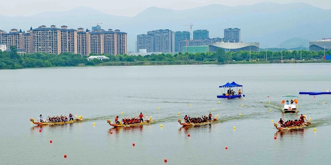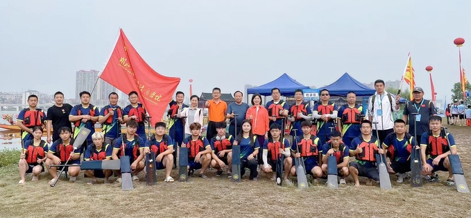 比赛现场,节奏感十足的鼓声震耳欲聋,船桨激起的水浪声不绝于耳。一艘艘龙舟犹如色彩斑斓的出水蛟龙,在宽阔的湖面奋楫争先。湖岸边,围观群众里三层、外三层抢占最佳观赛场地,加油呐喊声此起彼伏。经过激烈角逐,我院师生龙舟队在公开组200米直道赛闯入省赛前八。