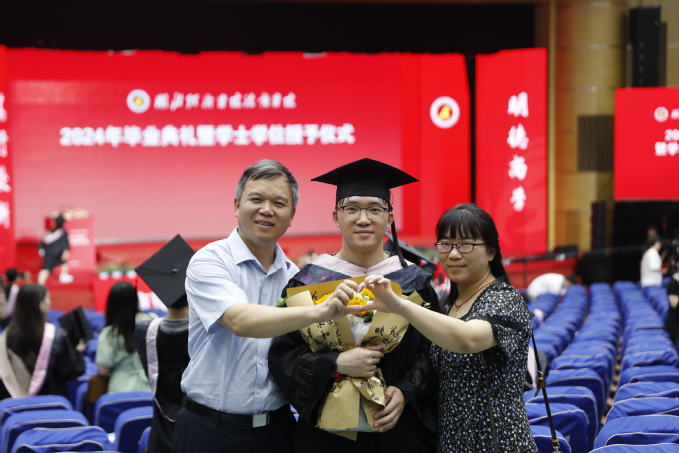 湖北经济万搏买球联赛官网(中国)官网党委常委、副校长、法商万搏买球联赛官网(中国)官网董事长何慧刚教授为考取研究生的2024届毕业生代表颁奖