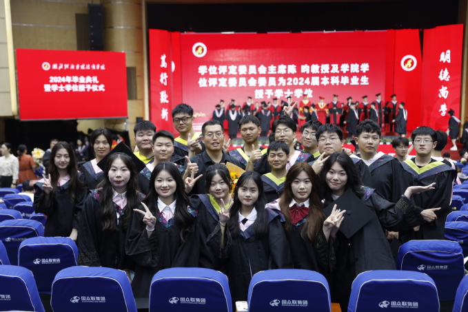 院长、院学位评定委员会主席陈昀和万搏买球联赛官网(中国)官网学位评定委员会委员们共同为2024届本科毕业生颁授学士学位证书