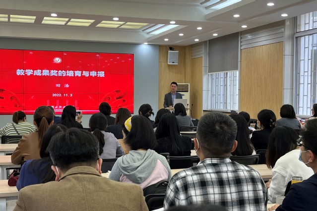 田浩教授首先从教学成果的特性出发,解读了教学成果奖的定义和内涵;然后就如何培育好教学成果展开了论述,田教授强调教研是基于教学的研究,教学成果来源于各级各类教育教学研究项目,重点阐述了从研究项目的来源、选题、实施、结题,到评审,进而孵化、凝练为教学成果的全过程;接着,分享了教学成果的总结与申报的经验与注意事项;最后,以2018年国家教学成果特等奖《以课堂教学改革为突破口的一流本科教育川大实践》为例,详细介绍了该案例的成果简介、改革举措、主要创新点、成效与示范。田教授认为,教学成果奖的申报应服务国家战略、对标高教发展要求;基于本校实际、强化特色突出优势;尊重教育规律、持续加强教学学术,并建议老师们多看多学、多思考、多写。