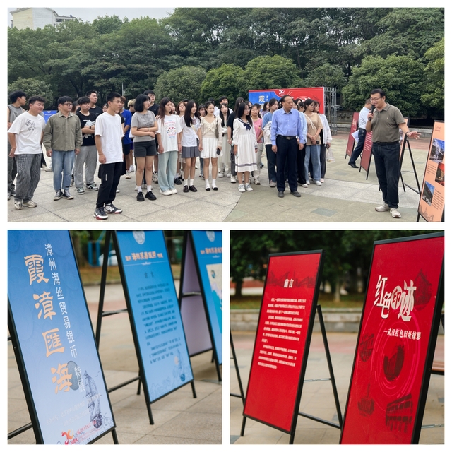 一张张红色的展板,无声诉说着武汉这座英雄之城的历史过往;一枚枚银色的硬币,深刻揭示了漳州这座外贸之都荣辱兴亡的历史演变。刘新阳向现场师生声情并茂地讲述了武汉红色文化、“海丝文化”的历史背景和时代内涵,让参展师生回味无穷、掌声不断,交流讨论之声贯穿全场。