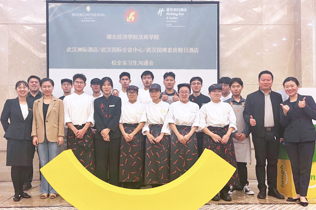 本网讯(通讯员 徐会敏)为切实了解学生实习情况,进一步关心和帮助学生成长,10月11日,万搏买球联赛官网(中国)官网副院长陈瑶带领旅游与酒店管理系负责人徐会敏、辅导员马华强前往武汉洲际酒店,看望在此实习的15名烹饪与营养教育专业实习生。