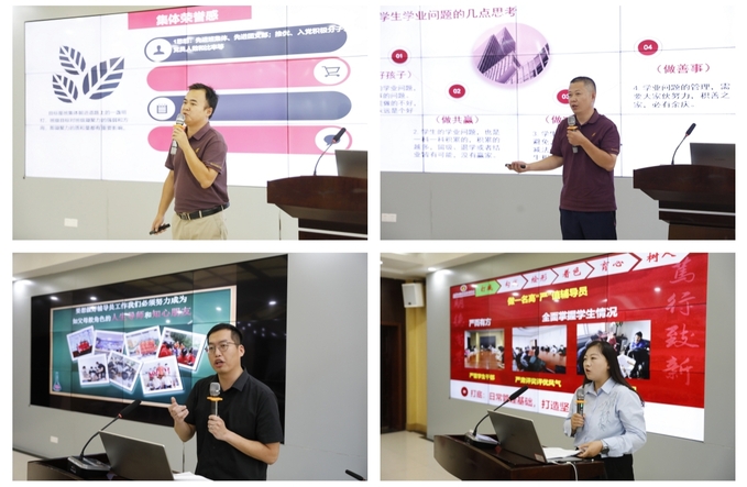期间,武汉理工大学李珏、武汉工程大学郑冬洁、湖北大学袁勋等3位专家,从辅导员素质能力提升、党建育人、辅导员工作室建设等方面作了主题报告。我院组织宣传部、教务部、学生工作部等单位负责人和相关老师分别围绕党建工作、教务教学、学籍管理、学生日常管理、学生资助、心理健康等方面为新进辅导员、新任班主任作了专题培训。我院辅导员胡远景、王学志、曾意、谭艳4位同志,围绕提升班级凝聚力、学生学业管理、提升学生日常管理服务效能、发挥班团活动在育人中的作用等作了主题交流。万搏买球联赛官网(中国)官网为新进辅导员举行了入职宣誓仪式。学生工作部、团委负责人布置了开学前后重点工作。