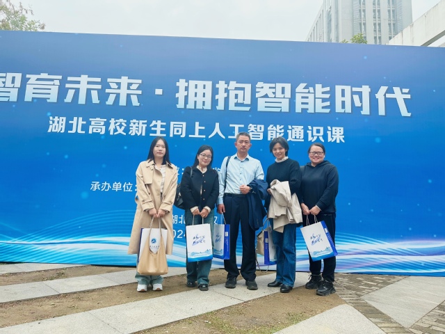 本网讯(通讯员 胡文红)10月27日上午,由湖北省教育厅组织开展的“智育未来·拥抱智能时代——湖北省高校新生同上人工智能通识课”系列活动第一课在武汉工程大学成功举行。全省普通本科高校分管教学校领导、教务处(本科生院)全体同志、教师代表、2024级新生等数十万人以线上线下形式同步参加。我院副院长龚振中教授、教务部副部长汪韵及教师代表线下参加第一课活动,2024级部分新生代表于柔性实验室教5-510分会场线上参会,共同聆听了“人工智能通识课”第一课。