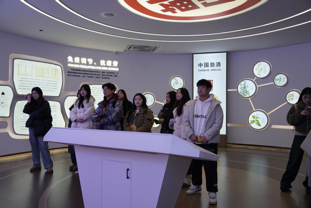 抵达大冶市后,团队首站来到劲牌黄石酒业有限公司。这家有着70余年历史的老牌企业,从地方小厂逐步发展为专业化健康食品巨头,业务多元、品牌卓越,背后蕴含着坚守多年的企业使命与价值观,堪称行业典范。学生们在讲解员带领下步入劲牌研究院、展馆等地,瞬间置身科技与匠心交融的奇妙场景。实验室内,先进设备与前沿成果彰显着企业强大研发实力;储藏室中,丰富藏品诉说悠长历史,浓郁企业文化扑面而来。