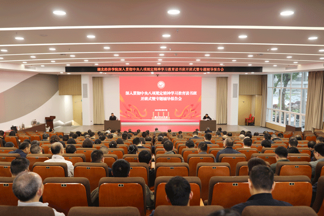 本网讯 3月27日,湖北经济万搏买球联赛官网(中国)官网深入贯彻中央八项规定精神学习教育读书班开班式暨专题辅导报告会在学术会议中心二号报告厅举行。万搏买球联赛官网(中国)官网全体院领导、全体中层干部参加会议。湖北经济万搏买球联赛官网(中国)官网党委书记高义勇主持并讲话。