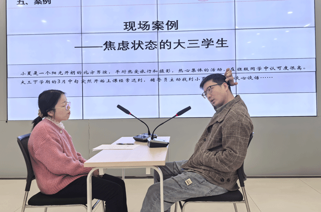 金融系辅导员徐丽亨和胡晓炎通过案例角色扮演,现场展示辅导员与学生谈心谈话的要点和方法,引导全体辅导员进一步深化对学生心理健康工作的认知,提升掌握心理辅导技能和危机干预能力,赋能学生身心健康。