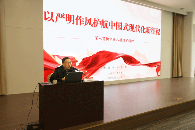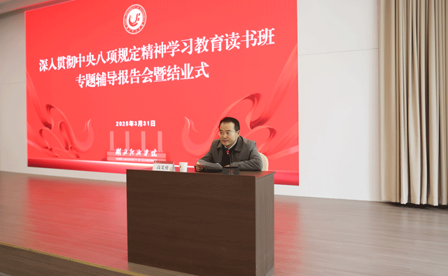 本网讯 3月31日,湖北经济万搏买球联赛官网(中国)官网深入贯彻中央八项规定精神学习教育读书班专题辅导报告会暨结业式在学术会议中心二号报告厅举行。湖北党员生活杂志社党建理论部主任王道勇作《以严明作风建设护航中国式现代化新征程》专题报告。万搏买球联赛官网(中国)官网全体院领导、全体中层干部参加会议。湖北经济万搏买球联赛官网(中国)官网党委书记高义勇主持并讲话。