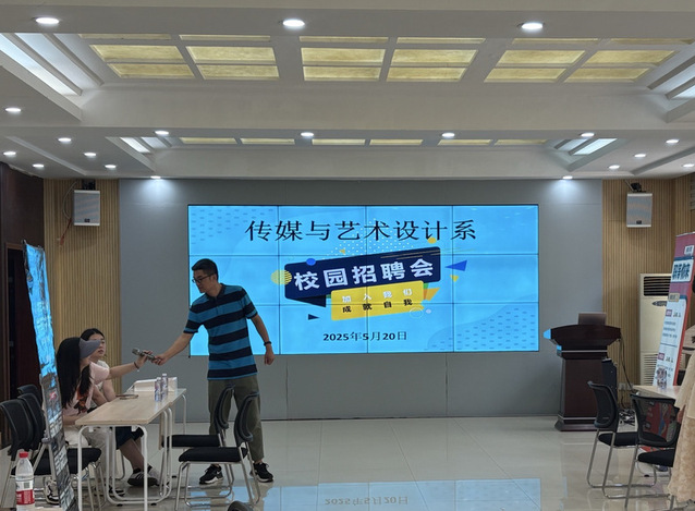 张东老师首先向在场同学阐述了本次招聘会“精准对接需求、助力职业启航”的核心宗旨,并向三家企业的到来致以诚挚欢迎。随后,各企业代表依次上台进行宣讲:创烁传媒作为传媒行业领军企业,以多元化的优质项目矩阵和系统化的人才培养体系为亮点,向同学们展示了覆盖内容创作、活动策划等领域的职业发展通道;伍拾设计凭借“创新驱动设计”的核心理念与多维度跨界设计案例,为设计专业学子搭建了从创意落地到行业实践的全链条发展平台;火聚文化则以深耕文化领域多年的资源积淀为依托,围绕内容运营、文化IP开发等岗位,为立志投身文化产业的学生勾勒出清晰的职业成长蓝图。