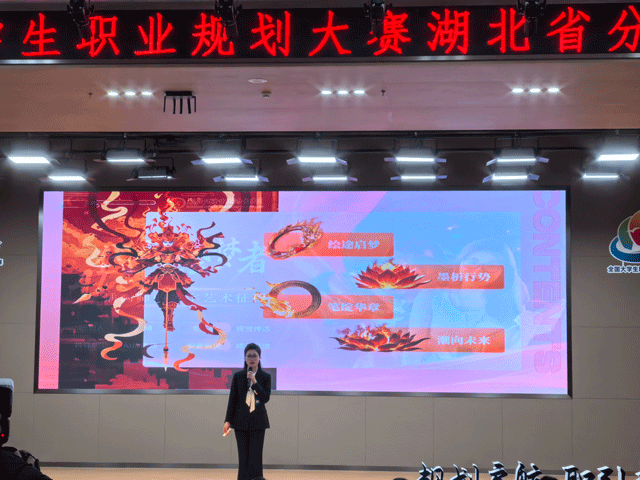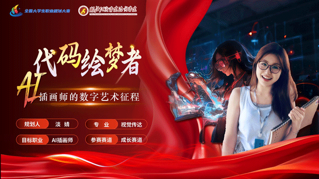 省赛决赛现场,淡婧以《AI代码绘梦者——插画师的数字艺术征程》为主题从自我分析、环境评估、职业匹配、评估调整四个方面进行展示,她的职业规划陈述不仅体现了个人职业理想与国家战略的紧密结合,还通过实践案例和数据分析增强了说服力,赢得了现场专家和观众的一致认可。