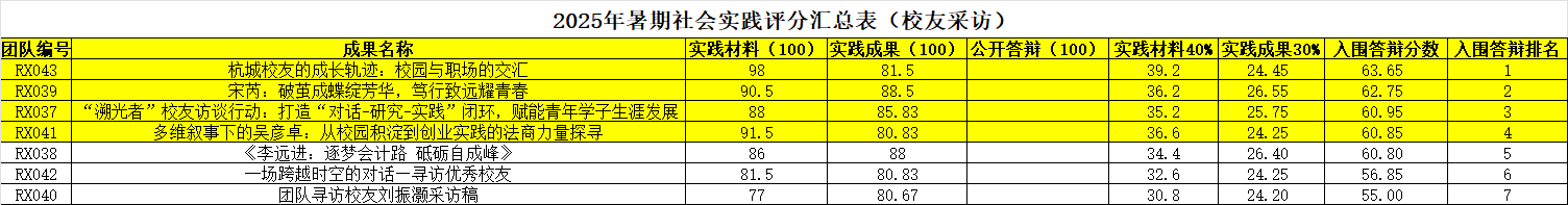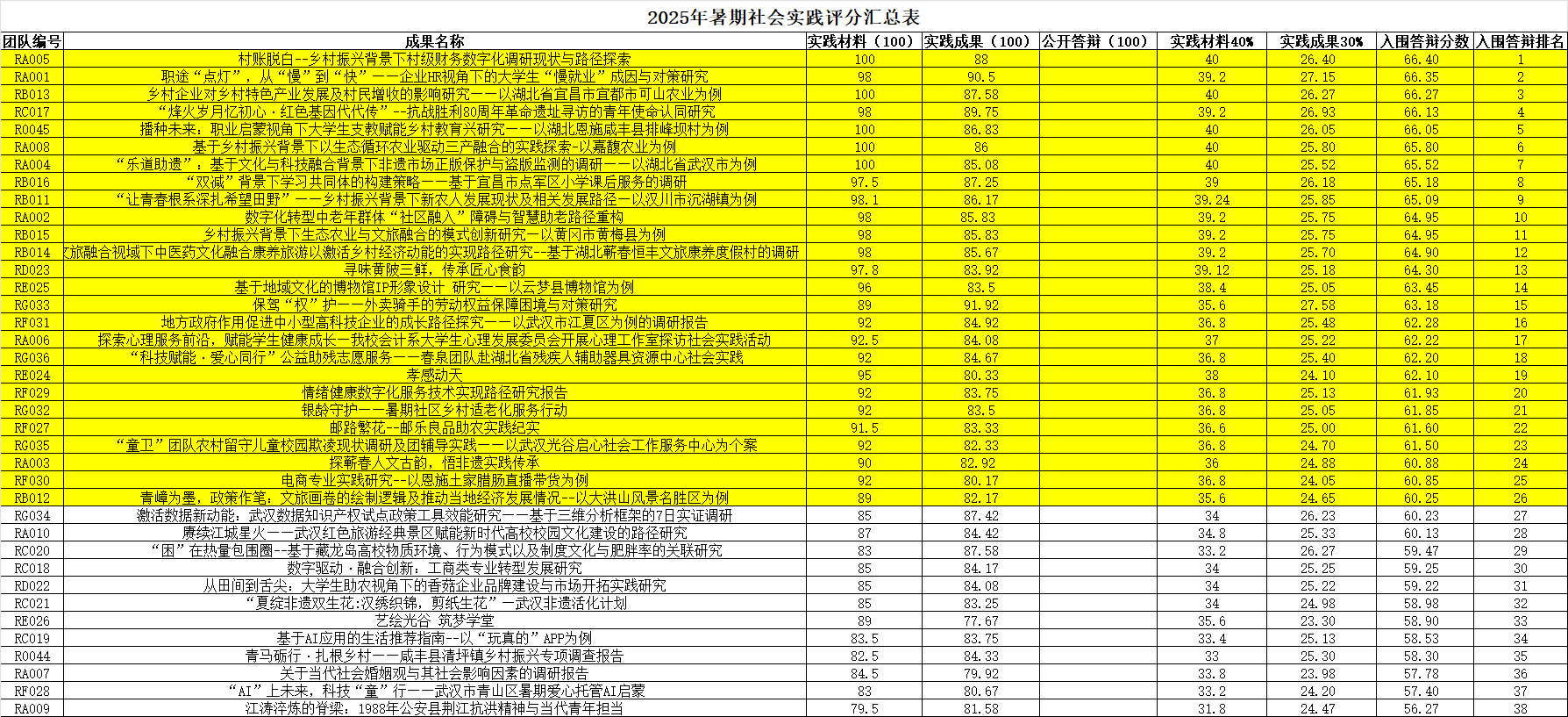 根据《万搏买球联赛官网(中国)官网2025年大学生暑期社会实践活动服务指南》相关要求,我院共计立项45支暑期社会实践团队,通过前期各团队实地开展、系团总支指导,45支暑期社会实践团队均验收合格。院团委对实践材料(40%)和实践成果(30%)进行评分统计后,现将进入到答辩评审展示环节【基本材料(40%)和实践成果(30%)总分数前70%】的26支队伍和校友采访的4支队伍公示如下:RA005、RA001、RB013、RC017、R0045、RA008、RA004、RB016、RB011、RA002、RB015、RB014、RD023、RE025、RG033、RF031、RA006、RG036、RE024、RF029、RG032、RF027、RG035、RA003、RF030、RB012、RX043、RX039、RX037、RX041
