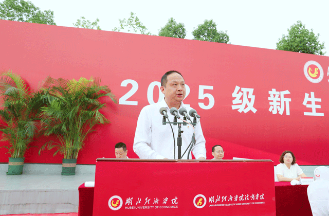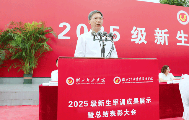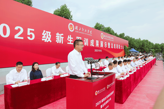 湖北经济万搏买球联赛官网(中国)官网党委副书记、副校长付宏宣读《关于表彰2025年军训先进集体和先进个人的决定》。