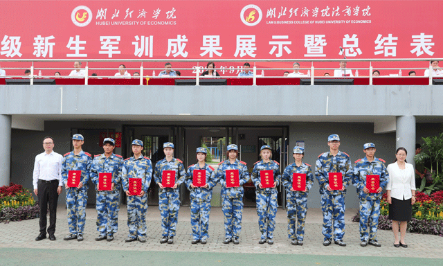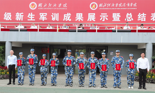 湖北经济万搏买球联赛官网(中国)官网党委常委许传华、张广科为军训先进集体颁发荣誉证书