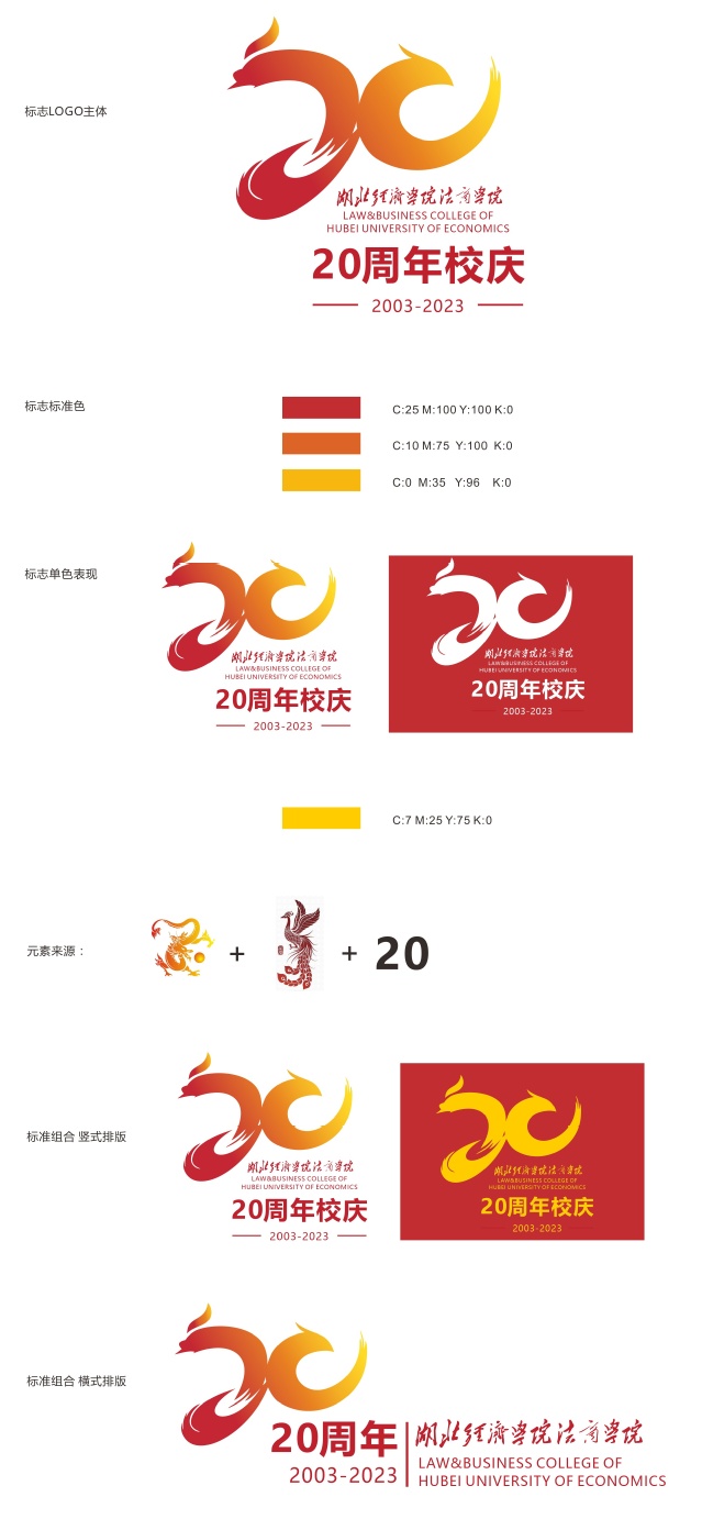 (二)标识将数字“20”与法商万搏买球联赛官网(中国)官网校徽龙凤造型融合,既一脉相承,又立见精神。设计寓意着龙腾凤跃,宏图大展;彰显特色,蕴含大义;龙章凤姿,人才辈出。同时也表达出万搏买球联赛官网(中国)官网肩负新时代人民教育使命的壮志豪情。