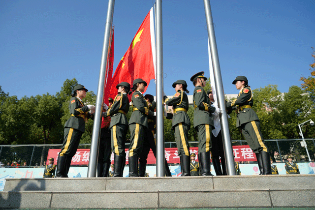 11月13日开幕式上,鲜花队、仪仗队、红旗队、各单位运动员方队依次入场。五星红旗在庄严的国歌声中冉冉升起,校旗、会旗在《运动员进行曲》中升起。随后,团体操《龙舞山河》、健美操《风起旗舞》、体育舞蹈《黄河奔腾》、艺术体操《舞忆峥嵘》等节目依次上演。