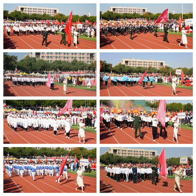 在方队入场环节,由我院院领导颜莉、邓志华、张承良、牛睿军、龚振中带领的教职工运动员方队和各系学生运动员方队步伐整齐、口号铿锵,展现出师生团结进取、朝气蓬勃的风采,赢得现场观众阵阵掌声。