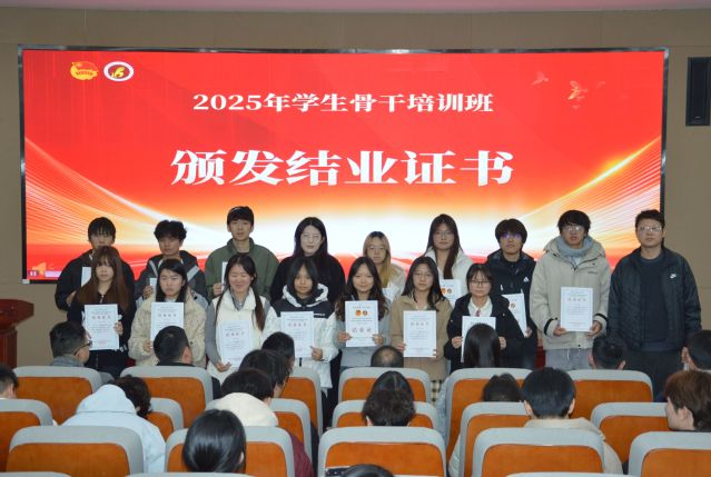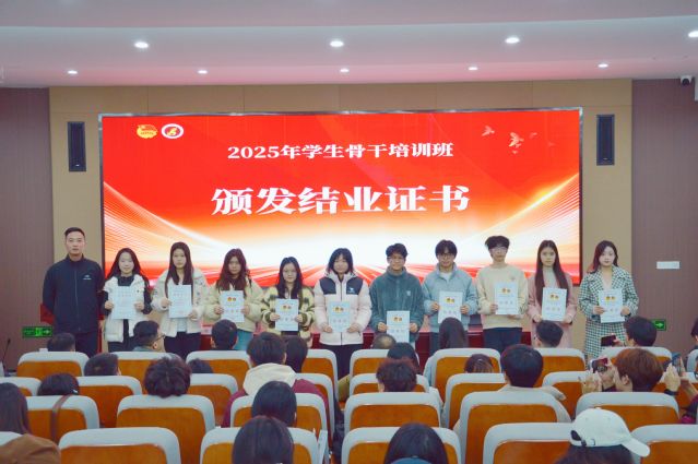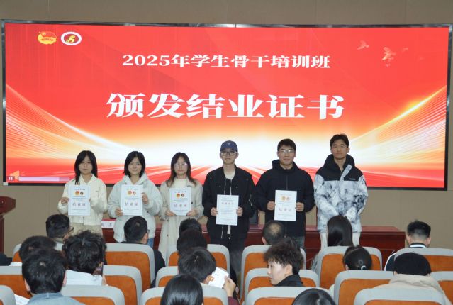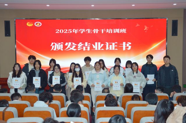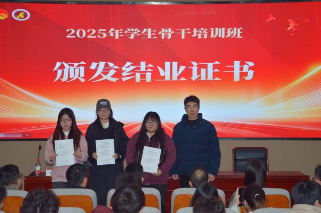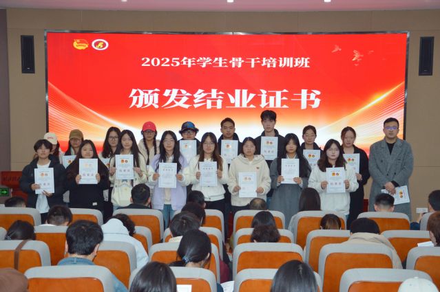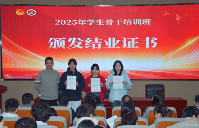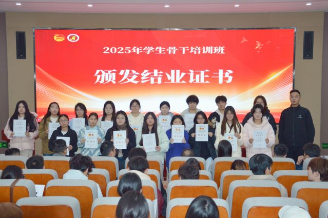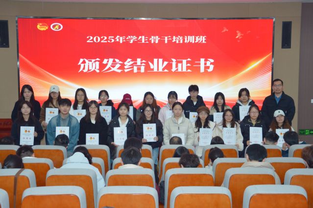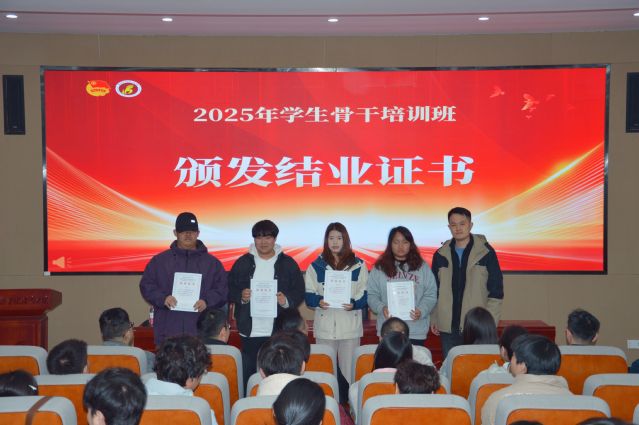 授课结束后举行了结业仪式。各学生组织指导老师为各组织学员颁发结业证书,各系团总支老师为各系学员颁发结业证书,祝贺各学生骨干顺利结业。