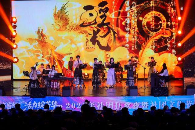 演出现场,在大学生艺术团器乐队表演的器乐合奏《浮光》中拉开帷幕。演出共有15个节目,涵盖国风、流行、摇滚、舞蹈、小品等多种形态,充分彰显法商学子“各美其美、美美与共”的青春底色。