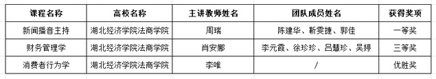 本网讯(通讯员 胡文红)近日,第七届全国高校混合式教学设计创新大赛落下帷幕,我院传媒与艺术设计系周瑞老师主讲的《新闻播音主持》荣获一等奖、会计系肖安娜老师主讲的《财务管理学》获得“三等奖”、工商管理系的李唯老师主讲的《消费者行为学》获得“优胜奖”。