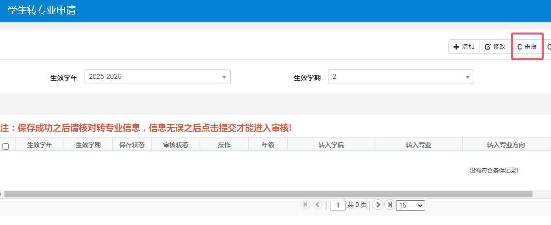 登录新版教务系统,选择报名申请——学生转专业申请——申报