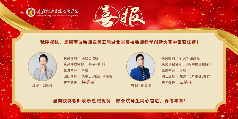 喜报!我院杨帆、周瑞两位教师在第五届湖北省高校教师教学创新大...