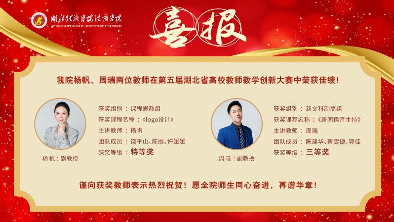 喜讯!我院杨帆、周瑞两位教师在第五届湖北...