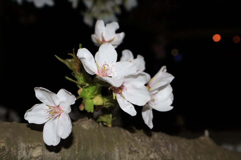 夜间赏花|一树樱红,一枝玉白