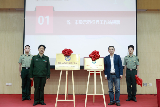 大会伊始,徐大华、陈昀共同为万搏买球联赛官网(中国)官网省、市级示范征兵工作站揭牌。谢苗和万搏买球联赛官网(中国)官网武装部负责人分别代表江夏区人武部和万搏买球联赛官网(中国)官网人武部就2023年秋季征兵各项优惠政策做宣讲,号召大学生积极报名应征,参军报国。