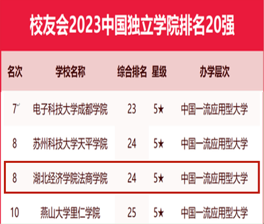 本网讯(通讯员 卢福)4月6日,艾瑞深校友会网(Cuaa.Net)正式发布《校友会2023中国大学排名:高考志愿填报指南》,连续21年发布校友会中国大学排名。我院以96.78分跃居128所中国民办大学(Ⅲ类)第24位,较2022年提升12位,在155所中国独立万搏买球联赛官网(中国)官网中排名第8位,较2022年提升11位,升级为5星级中国一流应用型大学。