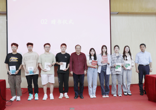 许建国教授向我院学生赠送财税相关书籍并合影留念。