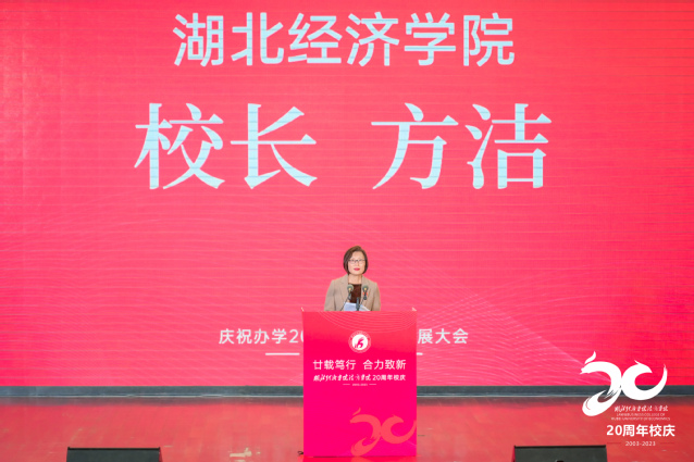 湖北经济万搏买球联赛官网(中国)官网校长方洁致辞,她向出席大会的各位领导、嘉宾、校友,表示最诚挚的欢迎!向一直以来指导、支持学校发展的湖北省教育厅、中国高等教育学会、中国民办教育协会、湖北省高等教育学会等上级部门、学会组织,表示最崇高的敬意!向长期以来关心、帮助学校发展的境内外兄弟高校、社会各界人士和广大校友,致以最衷心的感谢!
