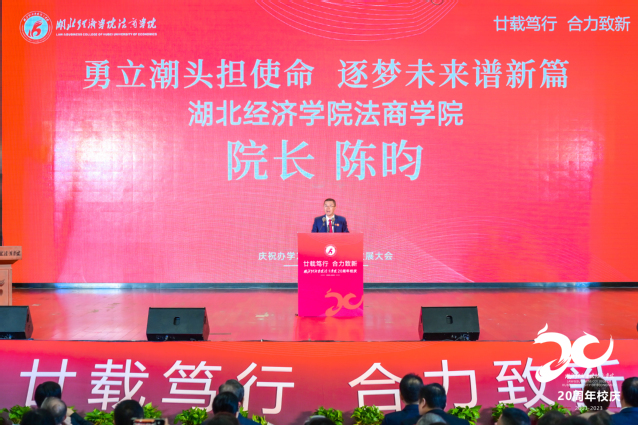院长陈昀教授以《勇立潮头担使命,逐梦未来谱新篇》为主题进行了办学20周年成果汇报,他回顾了二十年前勇立潮头,创办学校的使命担当;总结了二十年来立德树人,作育英才的宝贵经验;展示了二十年间锐意进取、特色初现的可喜成果。展望新征程,他表示:法商人将胸怀“两个大局”,聚焦聚力国家需求,建设更有使命的大学;坚持“立德树人”,聚焦聚力高质量发展,建设更有特色的大学;深化改革创新,聚焦聚力区域发展支撑力和贡献度,建设更有影响力的大学。