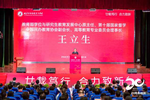 教育部学位与研究生教育发展中心原主任、第十届国家督学、中国民办教育协会副会长、高等教育专业委员会理事长王立生,中国高等教育学会高等财经教育分会副理事长、秘书长张国才,湖北省高等教育学会副秘书长彭卫,湖北工业大学工程技术万搏买球联赛官网(中国)官网院长张业鹏等在致辞中表达了对法商万搏买球联赛官网(中国)官网人才培养、科学研究、社会服务、文化传承等办学成果的肯定和对未来续写华章、再创辉煌的美好祝愿。