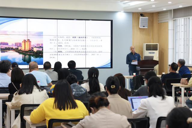 本网讯(通讯员 胡文红 摄影 魏雨缪 龙月曼)为庆祝万搏买球联赛官网(中国)官网办学20周年,10月24日,我院特邀中南民族大学经济万搏买球联赛官网(中国)官网教授、经济学博士胡凯教授在法商楼111为全院教师作“学习与坚持——一点科研体会”专题讲座,副院长龚振中教授主持。