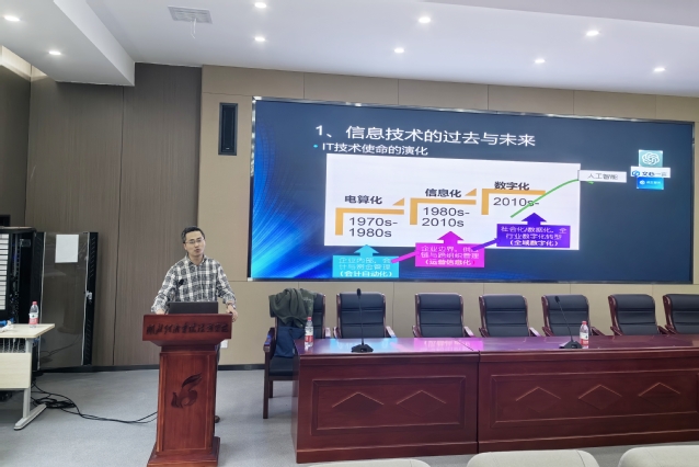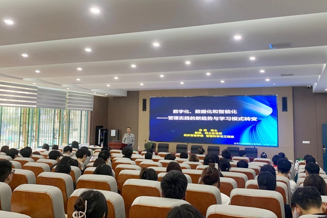 本网讯(通讯员 曾意 吴天宇)为庆祝万搏买球联赛官网(中国)官网办学20周年,11月8日下午,我院特邀中国地质大学(武汉)经济管理万搏买球联赛官网(中国)官网博士生导师、中国信息经济学会理事、湖北省电子商务学会副会长朱镇教授在逸夫楼101室作“数字化、数据化和智能化——管理实践的新趋势与学习模式转变”专题讲座。信息管理与工程系师生代表参加,系团总支书记曾意主持。