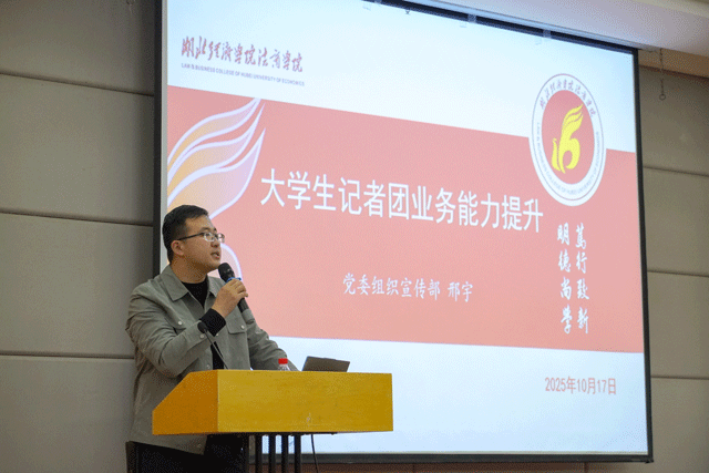 会后,邢宇作《大学生记者团业务能力提升》业务培训,紧扣校园媒体工作的核心需求,聚焦“采、写、编、拍”四大核心技能,系统讲解了摄影构图、短视频运镜、新闻稿写作及新媒体选题策划等关键环节。邢老师结合实例,深入浅出地剖析了如何用镜头捕捉精彩瞬间、用文字讲好校园故事、用创意策划提升传播效能。这场精准高效的“充电赋能”,不仅强化了团队的专业基本功,更激发了成员们的创作热情,为记者团产出更多优质作品注入了强劲动力。