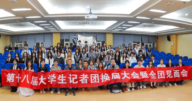 大会在悠扬的团歌《我们都一样》中渐入尾声,全体师生齐声高喊“大记若彩虹,遇上方知有”的响亮口号,为本次换届大会画上了圆满的句号。
