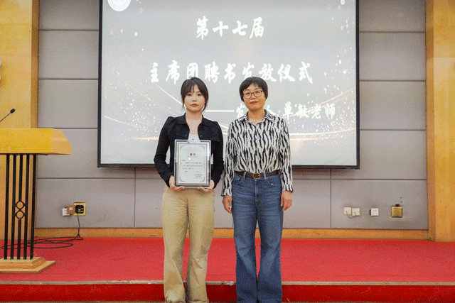 第十七届记者团团长匡盼盼为各部门负责人颁发聘书