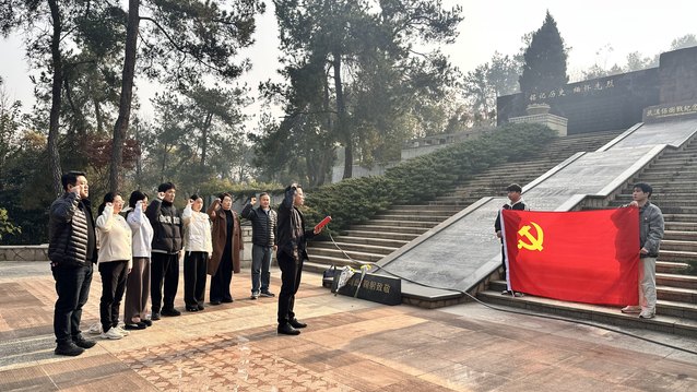 师生党员先后参观了武汉抗战纪念园、湖北军民抗战博物馆,在庄严肃穆的抗战纪念碑前重温入党誓词,并向革命先烈默哀献花。聆听武汉会战历史讲解,沉浸式接受党性教育与精神洗礼。师生党员围绕传承红色基因、践行党的二十大精神及传播红色文化展开深入探讨,决心将红色精神化为行动,教师党员将其融入日常育人工作,学生则立志以先烈为楷模,践行服务人民的初心。
