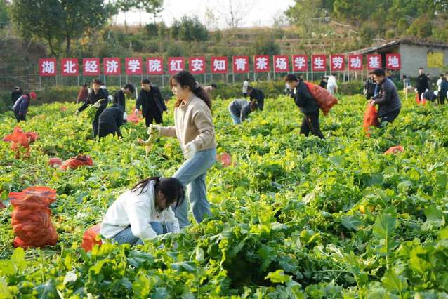 下午,师生一行参观永佳河镇知青茶厂和知青文化馆,聆听了知青茶场党支部书记杨敬宇以《乡愁添白发,只为红安红》为主题的特色党课,杨书记讲述了自己退休后返乡扶贫,重振知青茶场致力于乡村振兴的经历和故事。随后,师生代表来到了知青茶厂学生劳动基地,在茶厂工作人员的带领下撸起袖子拔萝卜,体验知青劳动生活。