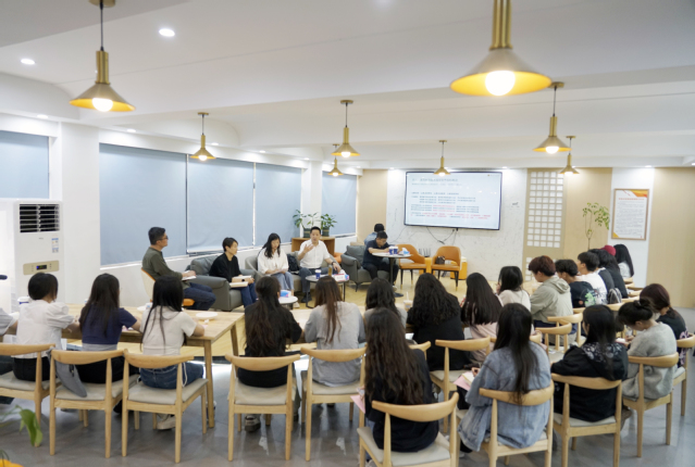 本网讯(通讯员 谭艳 摄影 陈罗易)4月16日,我院在“一站式”学生社区研讨空间顺利举行第三期“院领导面对面”活动,院党委副书记、副院长杨宏斌作“艺术教育何为”主题讲座。学生工作部、传媒与艺术设计系负责人,传媒与艺术设计系辅导员代表以及学生代表参加。