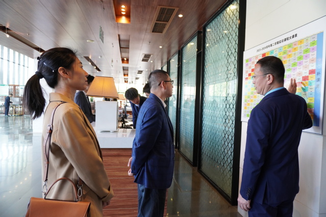 陈昀一行在摆志靖、教学事务部副教务长俞为民教授的陪同下,参观了中瑞的教学楼、教学酒店、瑞康颐养中心、酒水与咖啡实践教室、学生食堂等场所。