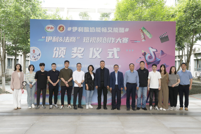 本网讯(通讯员 赵云飞 摄影 邢宇)4月23日,“伊利&法商”短视频创作大赛颁奖仪式在逸夫教学楼101报告厅顺利举行,伊利酸奶事业部市场部行销总监严芳、电商部负责人崔小林,校友企业南通波尔商贸有限公司负责人王博、王韦杰,万搏买球联赛官网(中国)官网领导陈昀、邓志华、杨宏斌出席,团委书记肖博,各系团总支书记、副书记,以及获奖学生代表参加。活动由播音21401班熊冉同学主持。