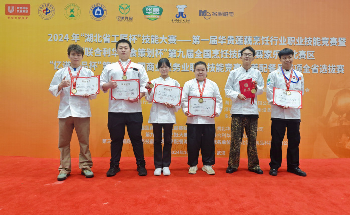 本网讯(通讯员 李夏薇 刘乐乐)10月9日至10日,2024年“湖北工匠杯”技能大赛——第一届全省莲藕烹饪行业职业技能竞赛暨第九届全国烹饪技能竞赛、第三届全国商业服务业职业技能竞赛营养配餐员赛项全省选拔赛在武汉会展中心举办,我系6名学子参加了全省莲藕烹饪行业职业技能竞赛中式面点、西式面点赛项比赛,其中烹饪22302班程志豪、烹饪22301班冯捷获西式面点赛项特金奖,烹饪23301班宋圆圆、彭凤扬及烹饪23302班郭阳获西式面点赛项金奖;烹饪21402班周子峻获中式面点赛项金奖。