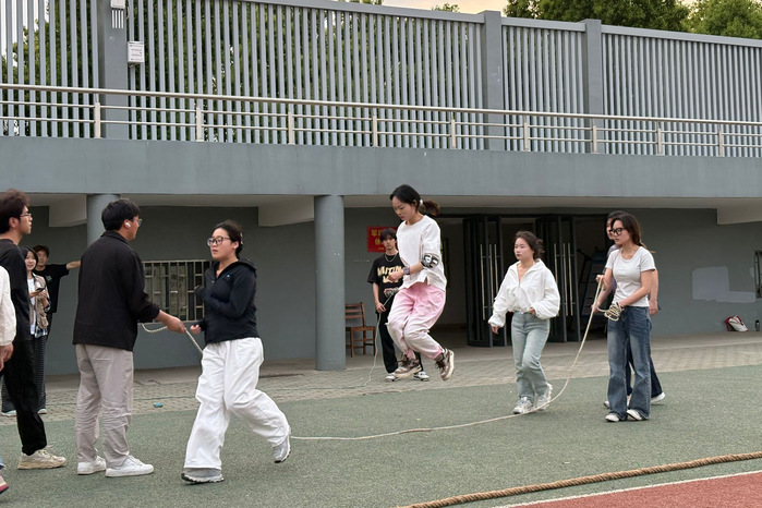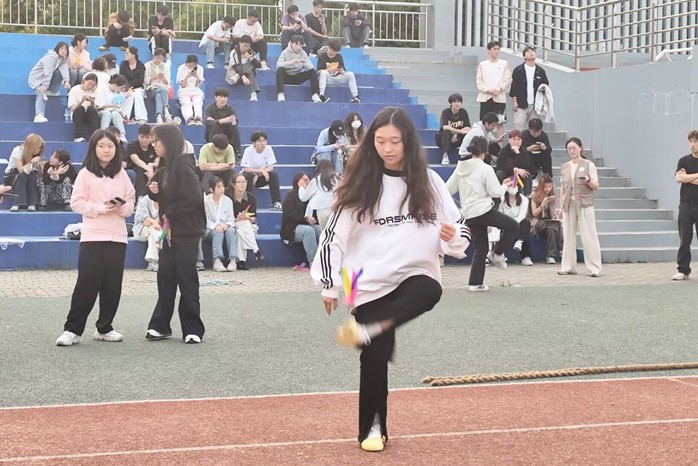 本次活动以趣味运动为主,同学们积极参与,现场气氛热烈,活动设置踢毽子、跳长绳、拔河等集体项目,既考验个人技巧,又强调团队协作。在踢毽子环节,同学们灵活敏捷,五彩的毽子在空中划出优美的弧线;跳长绳比赛中,各小组配合默契,节奏欢快,展现了良好的协调能力;而最激烈的拔河比赛则将活动推向高潮,参赛队员齐心协力,场边啦啦队呐喊助威,加油声此起彼伏,充分体现了团结拼搏的体育精神。