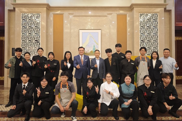 本网讯(通讯员 刘乐乐)为进一步加强校企合作,切实了解旅游与酒店管理系实习生实习情况,5月8日,院党委副书记、纪委书记张承良带领旅游与酒店管理系负责人及相关工作人员赴武汉洲际酒店看望20名2023级烹饪工艺与营养专业实习生。