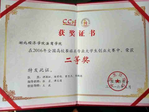 烹饪14级学生谭颖虹全国餐饮类创新创业大赛二等奖