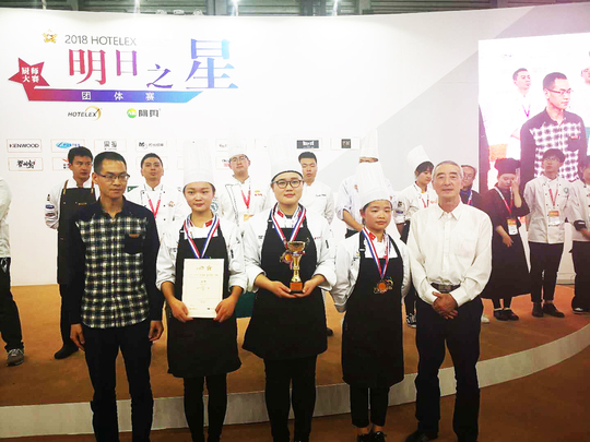 张慧(中)在“明日之星”厨师大赛全国总决赛中获银牌